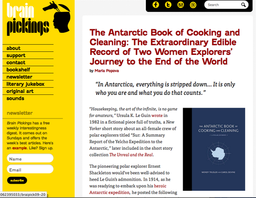 “The Antarctic Book of Cooking and Cleaning is very elegant. The pictures are beautiful and the recipes look delicious.” -Elena Pontiatowska Amor, author, Mexico